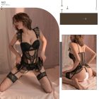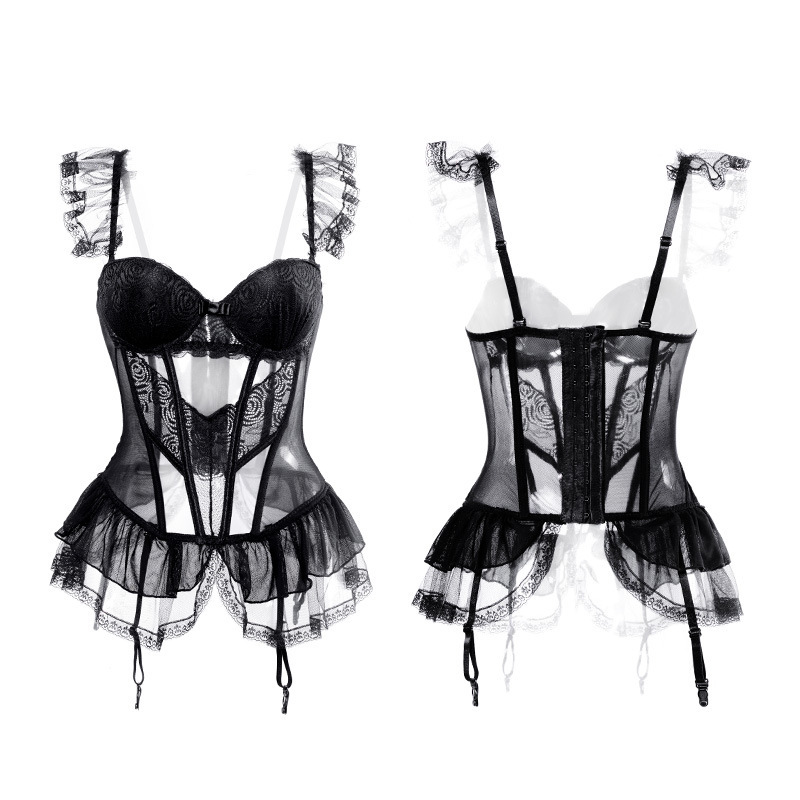 Color: black[steel ring cotton pad vest+removable garter belt+T pants], black[steel ring cotton pad vest+removable garter belt+T pants]+7203 black net stockings